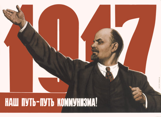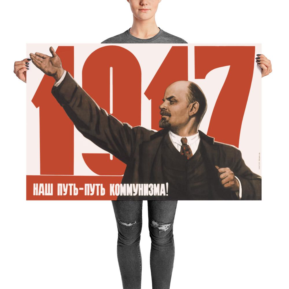 Museum-quality reproduction of 1967 Soviet poster captioned "1917. Our path - the path of communism!' featuring Vladimir Lenin.